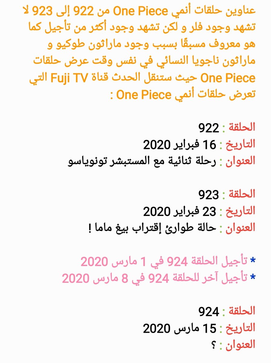 اليوم جايب لكمــ عناوين حلقات الانمي الاسطوري ون بيســ نبدأ على بركه الله 1 أنا لوف. سيتم تأجيل عرض الحلقة 876 من تاريخ 10 3 إلى تاريخ 17 3 بسب مهرجان ناجويا السنوي للمرأة حلقة ون بيس 876 ستكون بتاريخ 17 03 2019. من هذه الفتاة الجميلة الشابة 4. الرجل الذي سيصبح ملك القراصنة.