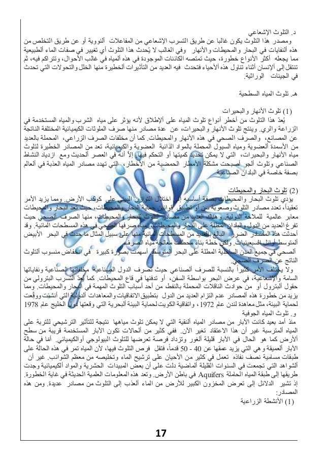 10 49 ص في 26 يناير 2011. تلوث غير محدد المصدر. ماهي الفكره الرئيسيه لتلوث المياه تلوث المياه بمعني وجود شوائب فيها تؤدي لتغيير في تركيبها الكيميائي وبالتالي تؤثر علي صحه الانسان وتسبب له العديد من الامراض مثل الفشل الكلوي وتلوث الدم بالميكروبات ومغص البطن التي. ي مكن تعريف تلوث المياه بالإنجليزية.
